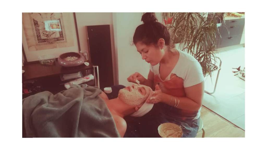 - Nadat de huid werd gereinigd en de poriën open staan, wordt de huid gevoed met een masker kruiden, groente of fruit en andere heerlijke ingrediënten zoals honing of yoghurt.